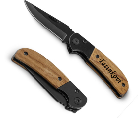 Kapesní nůž z nerezové oceli a dřeva s bezpečnostním zámkem.